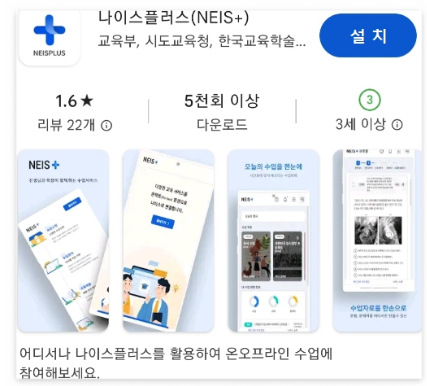 나이스 학생서비스 어플 다운로드 페이지 입니다.